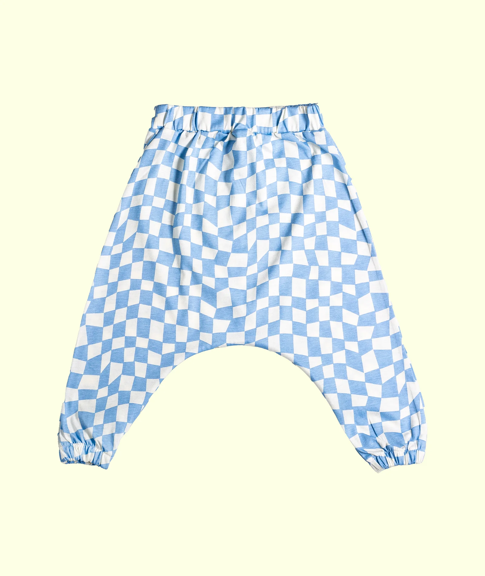 Miniklerin bu yazı rahat ve tarz geçirmeleri Mavi ve Beyaz Kareli Desen, %100 Organik Pamuk, Lastikli Bel Çocuk Pantolon Şalvar sizlerle!